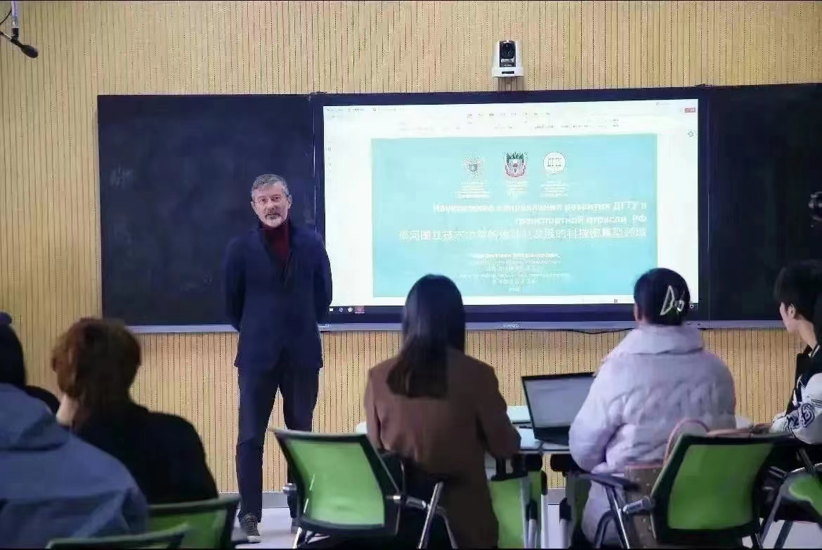多比林·伊万·弗拉基米罗维奇教授主要研究方向是道路交通组织及道路事故管理,为学生讲授《运输过程与系统理论》、《系统分析基础》等课程。学术报告开始前,他与同学们做了深入交流,与中方教师开展了学术讨论。本次报告结合了顿河国立技术大学的科研情况,从智能交通系统建模、突发事件下的运输系统建模、交通规划等方面介绍了目前交通运输领域研究方向和热点,剖析了交通运输领域科学密集型的发展方向和数字化建模,并从运输组织管理、交通安全、智能交通系统、运输物流等4个方向的科研论文选题分享了学术心得。