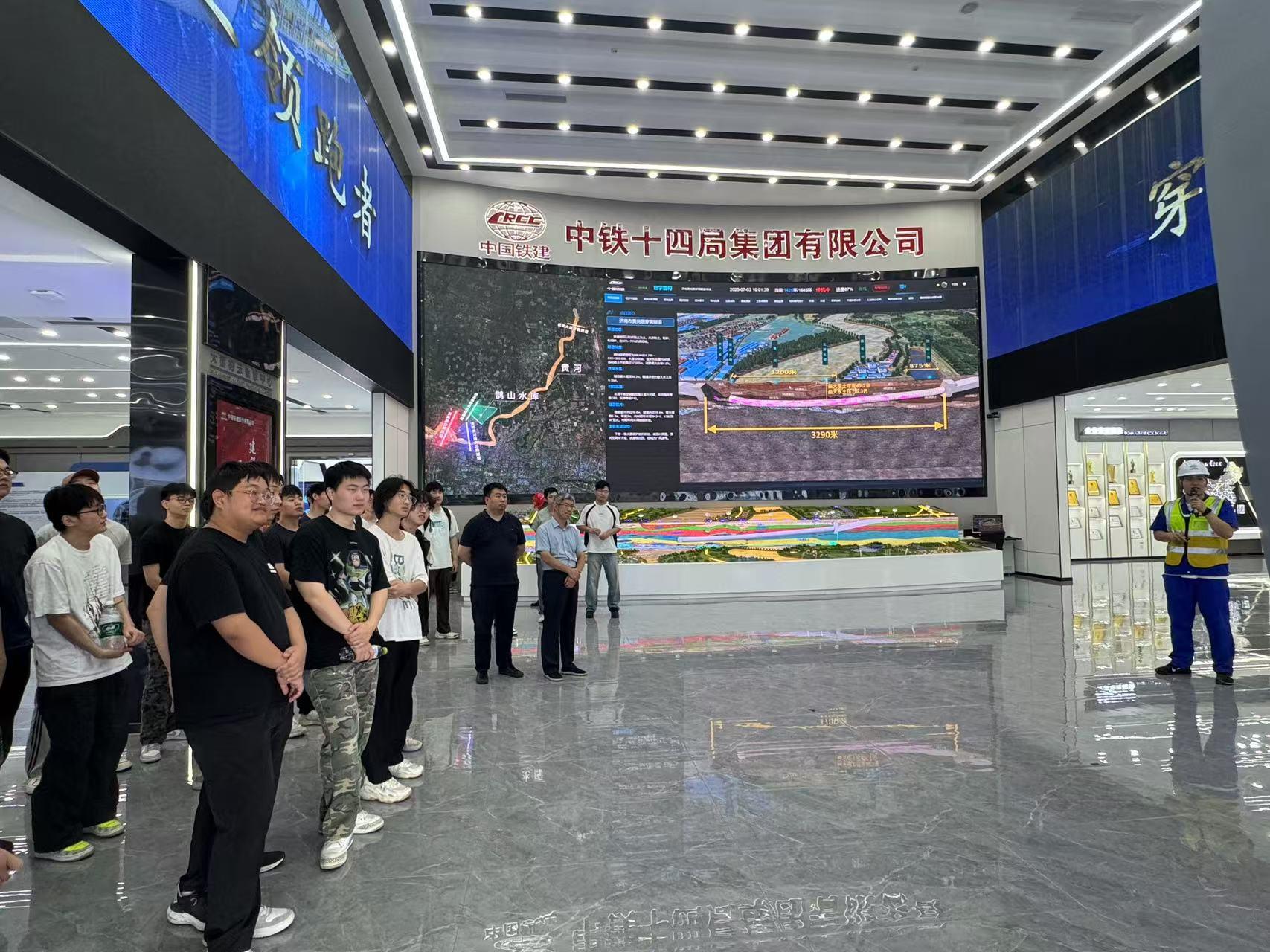 在现场教学环节,师生们走进穿黄隧道内部,实地参观了盾构机作业情况,了解了盾构隧道掘进技术、预制管片安装与铺设流程等工程工艺,现场感受“山河号”直径17.5米刀盘运转的震撼场面,近距离领略我国大型基础设施建设的技术实力与施工组织能力。