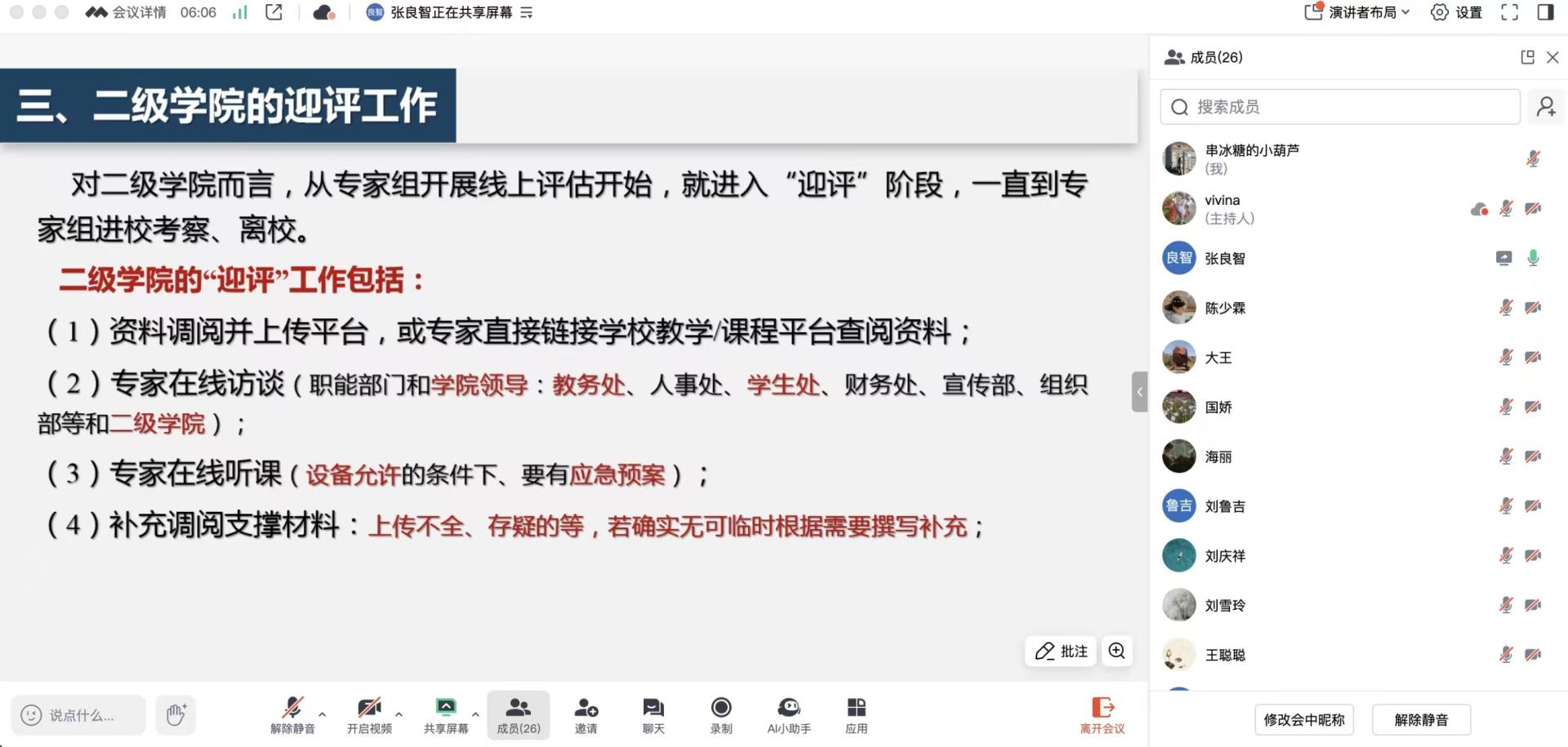 为深入贯彻落实学校关于教育教学审核评估工作的相关要求,近日,我院召开了本科教育教学审核评估培训动员会。会议由学院副院长张良智主持,校级督导赵海丽及全体教师参加会议。