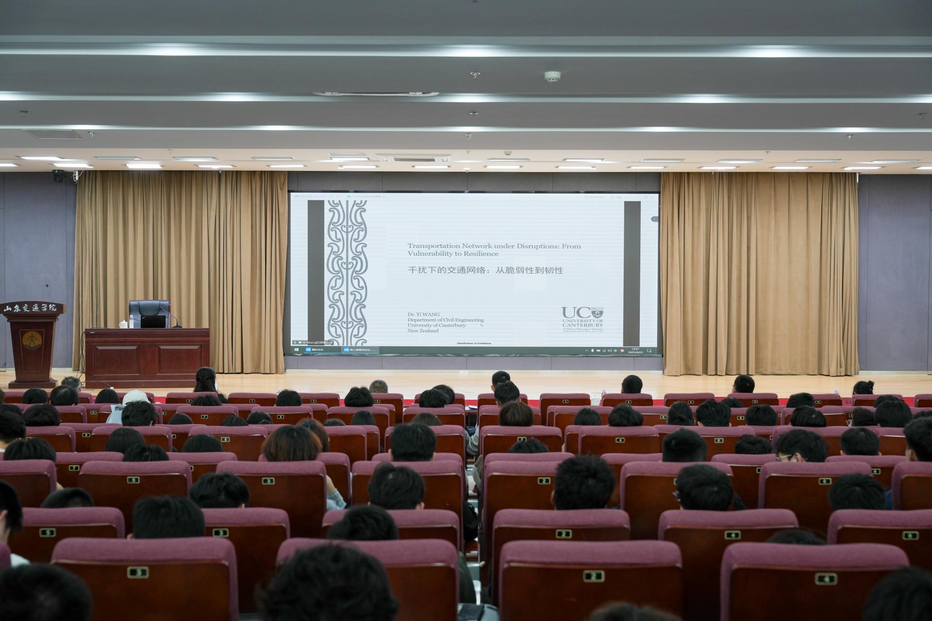 本次论坛邀请了河北工业大学王东升教授、李雨润教授、新西兰坎特伯雷大学王奕教授以及阿里云山东交通行业技术方案总监于滨等四位专家,分别围绕不锈钢及其结构的发展、液化场地中群桩抗震性能离心振动台试验研究进展、干扰下的交通网络、阿里云大模型产业的思考与实践等方面作主题报告。专家们的讲解涵盖了从交通网络的韧性建设到高科技材料的发展,再到新兴产业的实际应用,为师生们带来了丰富的学术视角和启发。