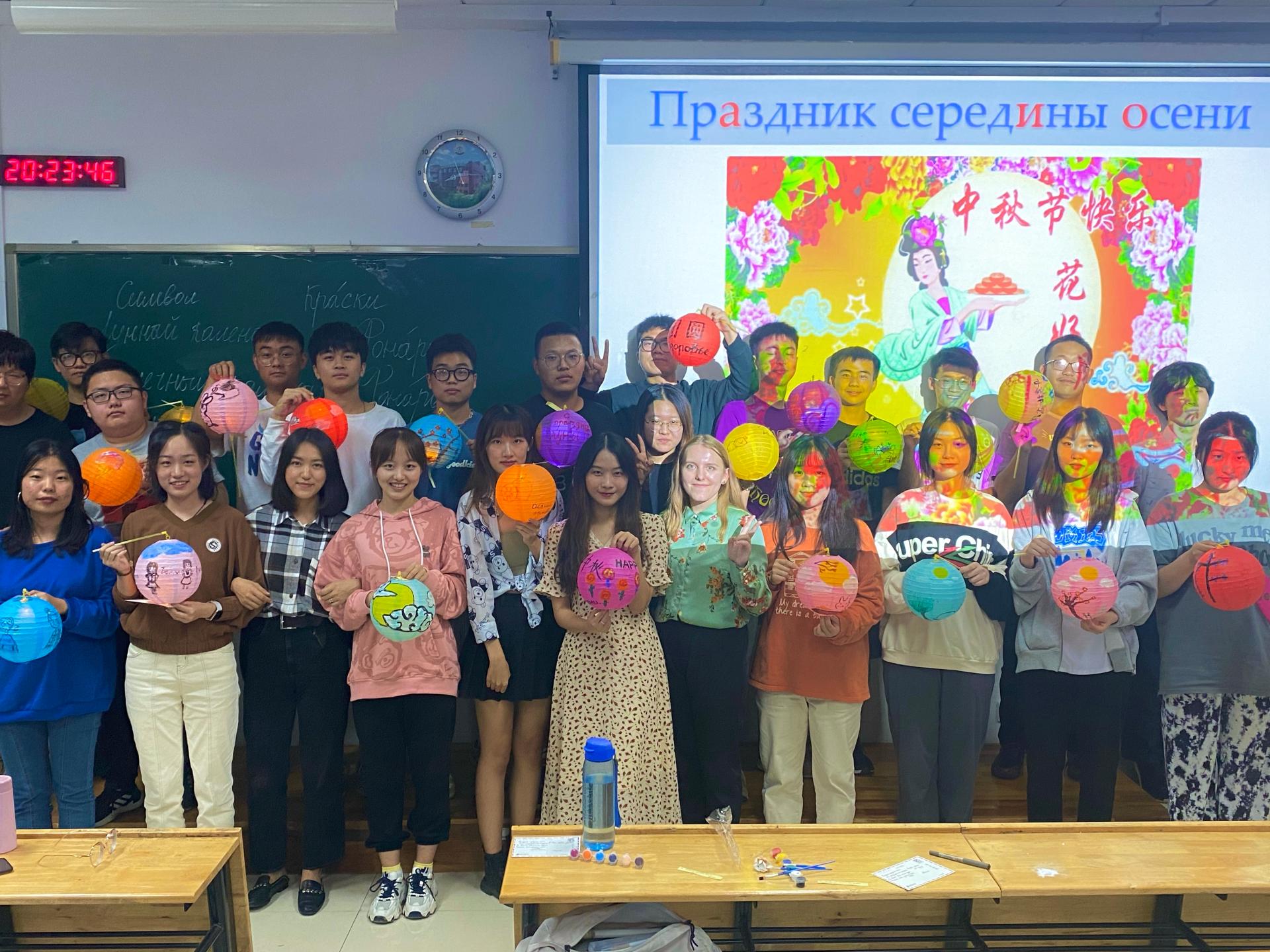 中秋节是中国四大传统节日之一,千百年来便有祭月、赏月、吃月饼、赏花灯等民俗。同学们与外教一起绘制中国传统纸灯笼、猜俄语灯谜、吃月饼,活动全程与外教使用俄语交流,在学习俄语的同时共同品味中华传统节日的喜悦与韵味。