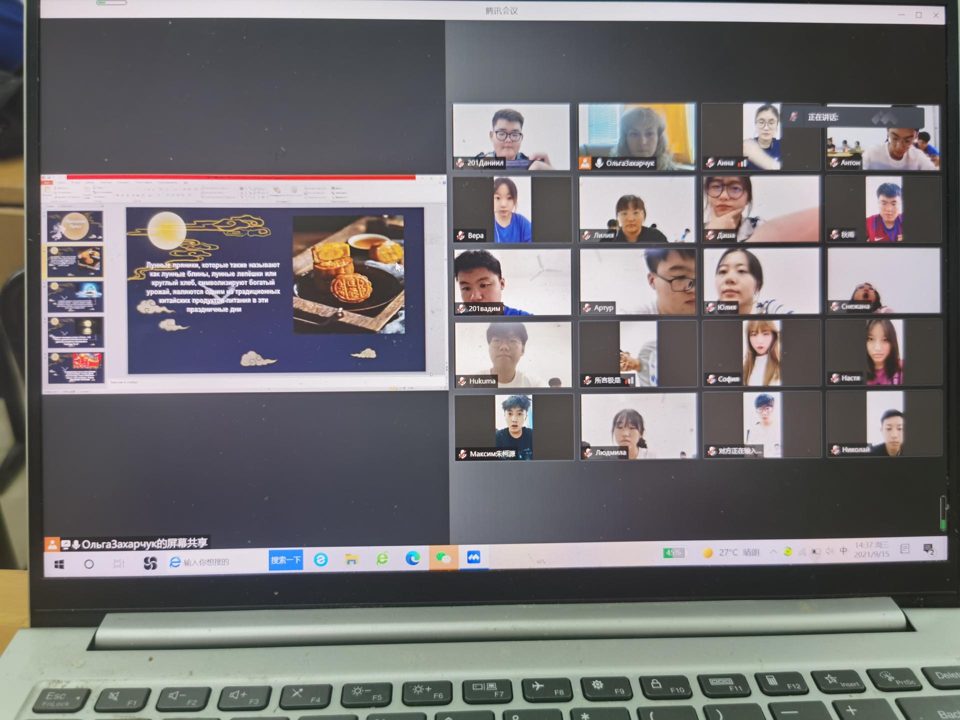 一轮明月挂中天,两地中秋月共圆。通过线上授课方式,远在顿河畔罗斯托夫的外教们带领学生一起开展“我与中秋”主题课程。课堂上,同学们用俄语介绍中秋节的起源、习俗及文化价值,分享自己与中秋节的趣味故事,表达自己对老师、对家人的节日祝愿。在锻炼学生口语表达能力的同时,有效地促进了中俄文化交流。