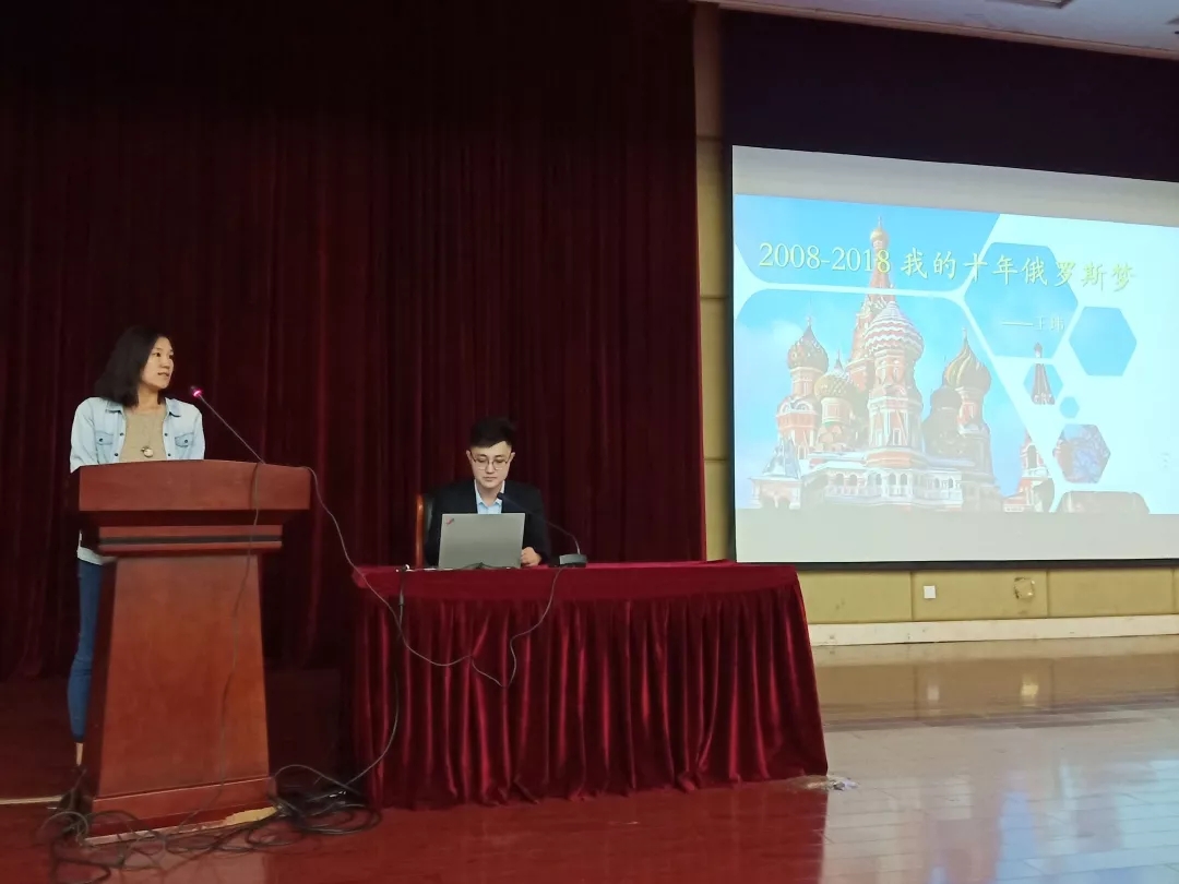 王玮博士以“十年俄罗斯梦”为主题,从中俄两国交往的近代史出发,强调俄语语言学习的重要性和必要性。而后,王玮博士为同学们展示了他在俄罗斯十年的留学生活和工作生活,希望同学们能够走出国门,继续学业的同时看不一样的风景,亲自体会俄罗斯的风情。