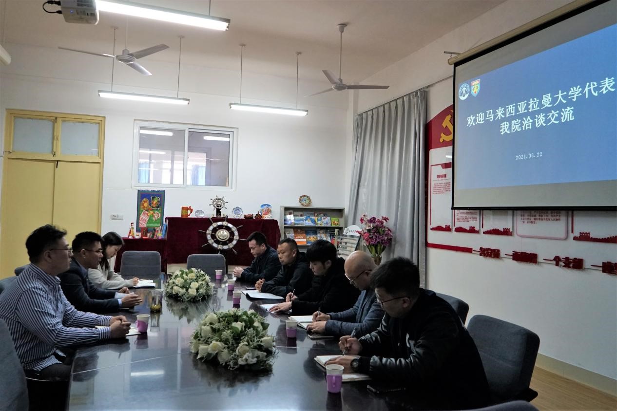 陶然代表对学院的热情接待表示了感谢,并介绍了拉曼大学的建校历史和办学情况。最后双方就学生交流、联合培养、就业前景和开展人才共同培养等项目进行了详细商讨。座谈会在融洽的气氛中进行,双方达成了初步合作意向。
