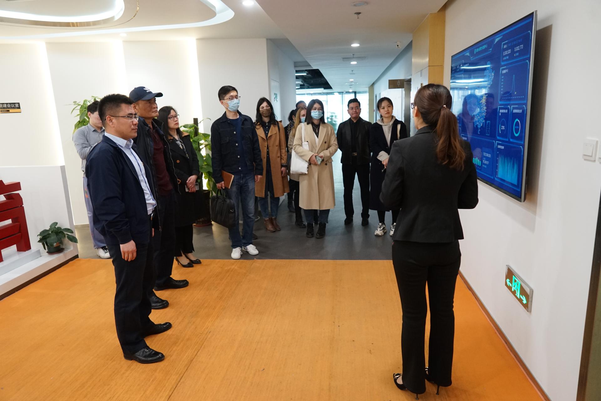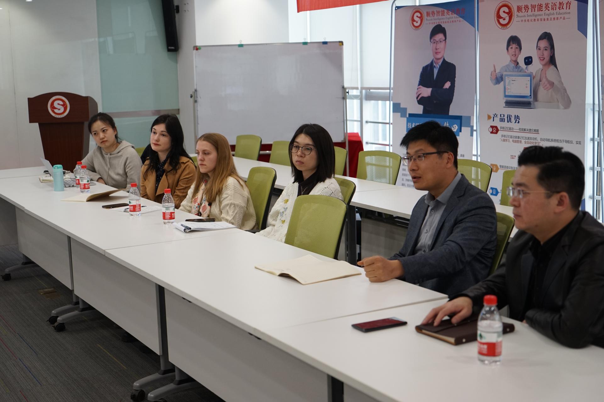顺势公司杨玉德董事长对刘院长一行表示欢迎,相关负责人带领学院教师参观了顺势公司的文化长廊,详细介绍了公司的发展历程、核心产品及所获荣誉。产品部负责人向学院教师们展示了顺势智能语言系统的各个板块、原理和功能,阐释了将人工智能、大数据分析、云计算等技术应用到外语学习中的作用机制。