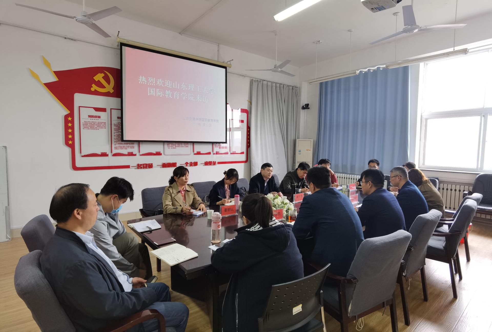 周德杰和张良智对我院留学生的人才培养模式与专业设置和日常管理与教育工作等基本情况进行了详细介绍。朱光明对我院的热情接待表示了感谢,对我院在中外合作办学、来华留学生培养等领域的工作所取得的成绩表示赞赏,同时简要介绍了山东理工大学国际教育学院的基本情况和办学特色,并表示希望两校可以分享经验,相互学习,共同探索来华留学生培养的新模式。