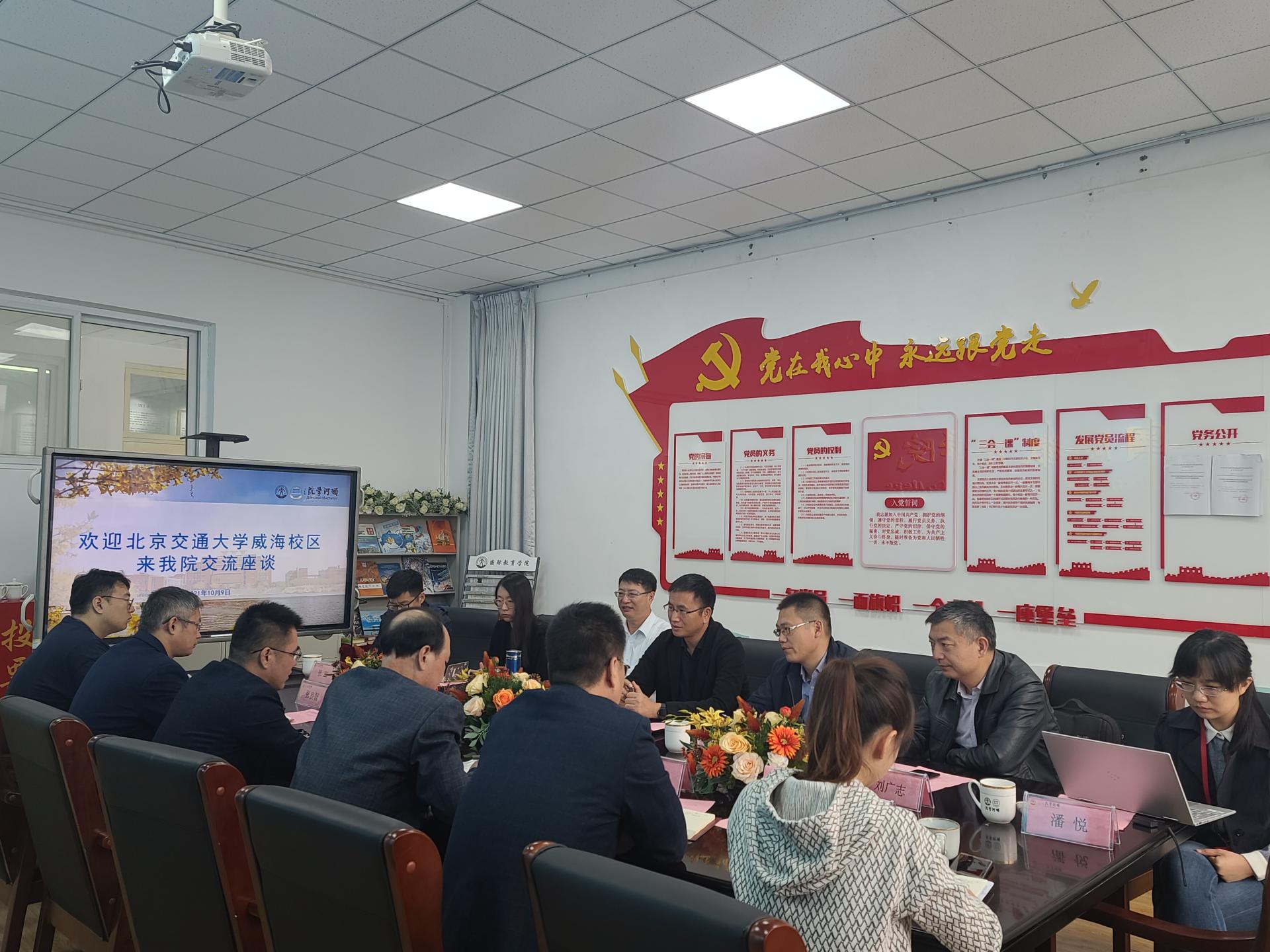 10月9日上午,北京交通大学威海校区党委书记孙文博、党委副书记李香山、国际学院副院长白延雷一行7人来到我院就办学管理模式、教学制度建设及人才培养等方面进行交流座谈,学院党委书记孙照波、院长刘春光及相关负责老师参加了本次座谈。