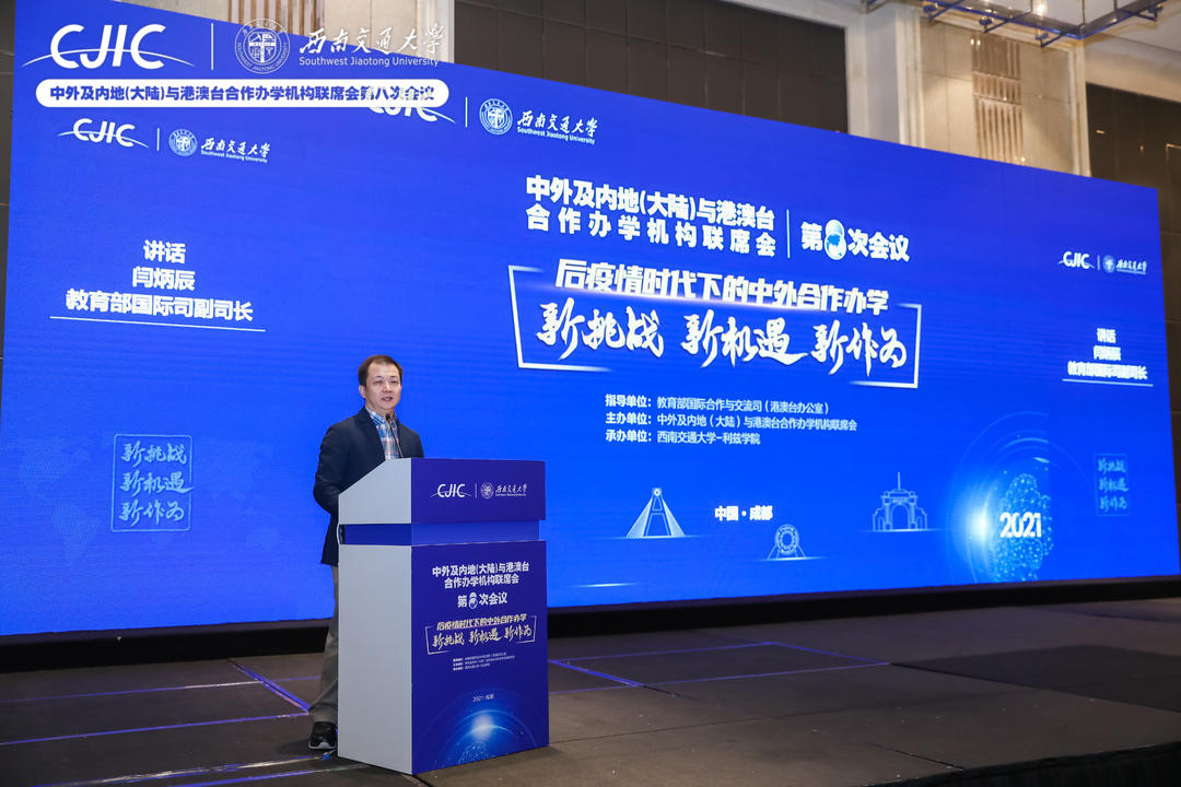 2021年10月17至19日,中外及内地(大陆)与港澳台合作办学机构联席会第八次会议在成都成功召开。本次会议由教育部国际合作与交流司(港澳台办公室)指导、机构联席会主办。我院院长刘春光,荣誉院长丁益军出席参会。