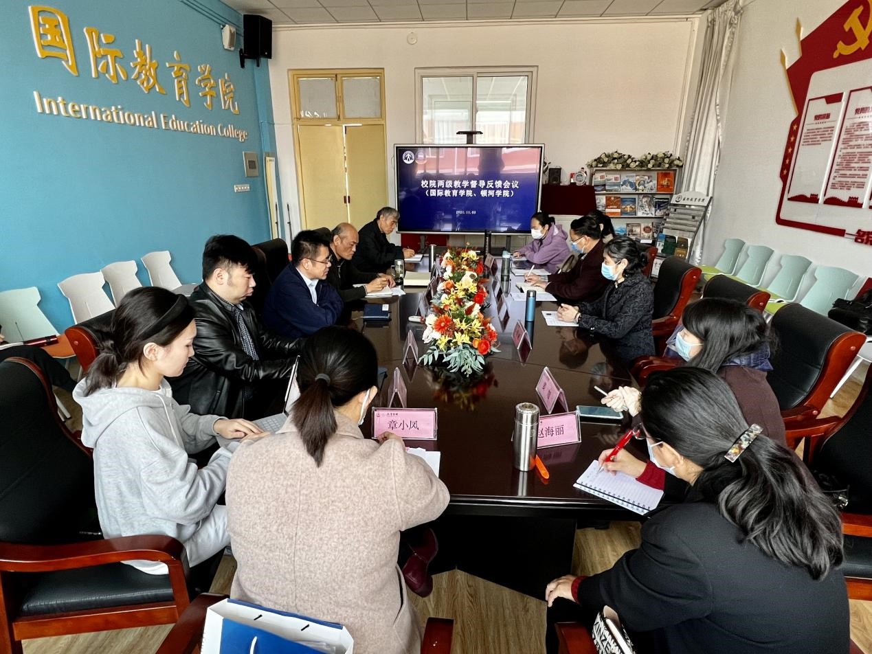 为进一步提升课堂教学质量,促进青年教师成长,提高人才培养水平,实现学校“十四五”计划目标,11月3日下午,我院召开2021-2022学年第一学期校院两级教学督导反馈会议,会议由国际教育学院院长刘春光主持,校院两级督导联合工作组成员、学院各教研室主任和教务管理人员参加了会议。