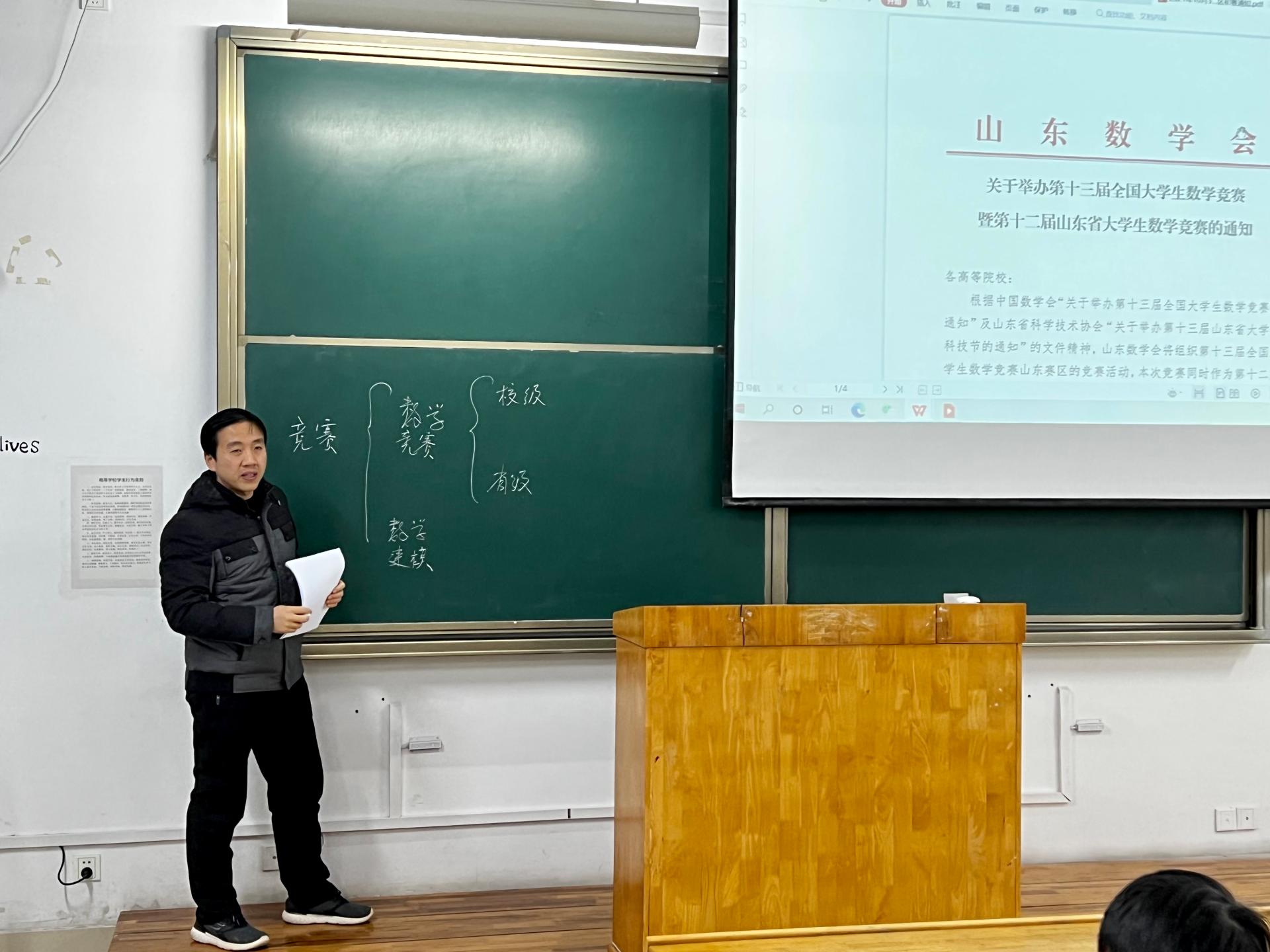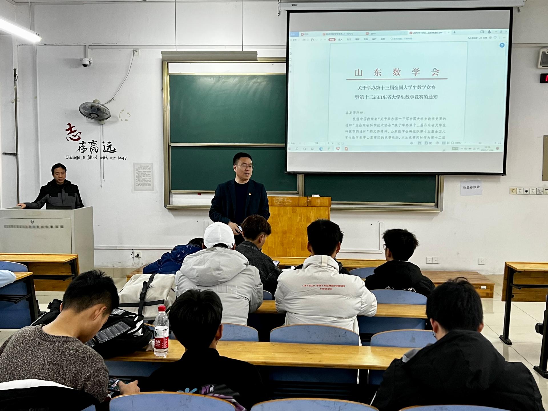 周德杰首先强调了参加学生学术科技竞赛的意义和重要性,随后向同学们简要介绍了大学生学术科技节A、B、C、D类竞赛的基本情况,勉励同学们从物理类、数学类竞赛为突破口,逐渐向专业类及A类竞赛努力,积极营造浓厚的学术科技竞赛氛围。王立飞、胡雷分别就物理类、数学类学术科技竞赛的比赛规则、竞赛题型、奖项设置和参与方式作了详细讲解,同时鼓励同学们大胆尝试,积极参赛,充分发挥大学生的创新意识,让学术科技的种子在大家心中落地生根发芽。随后周德杰为受聘指导教师颁发了聘书。