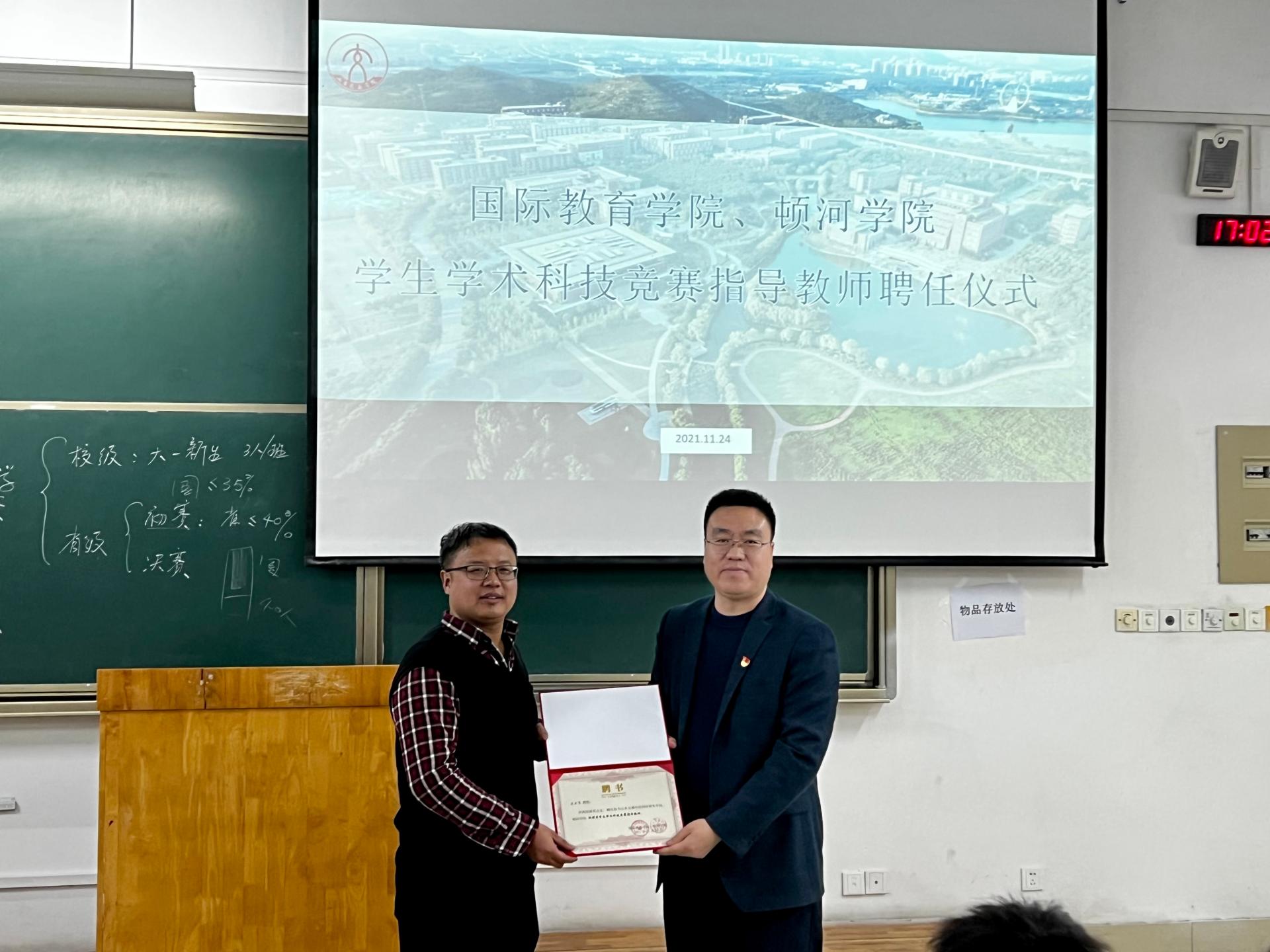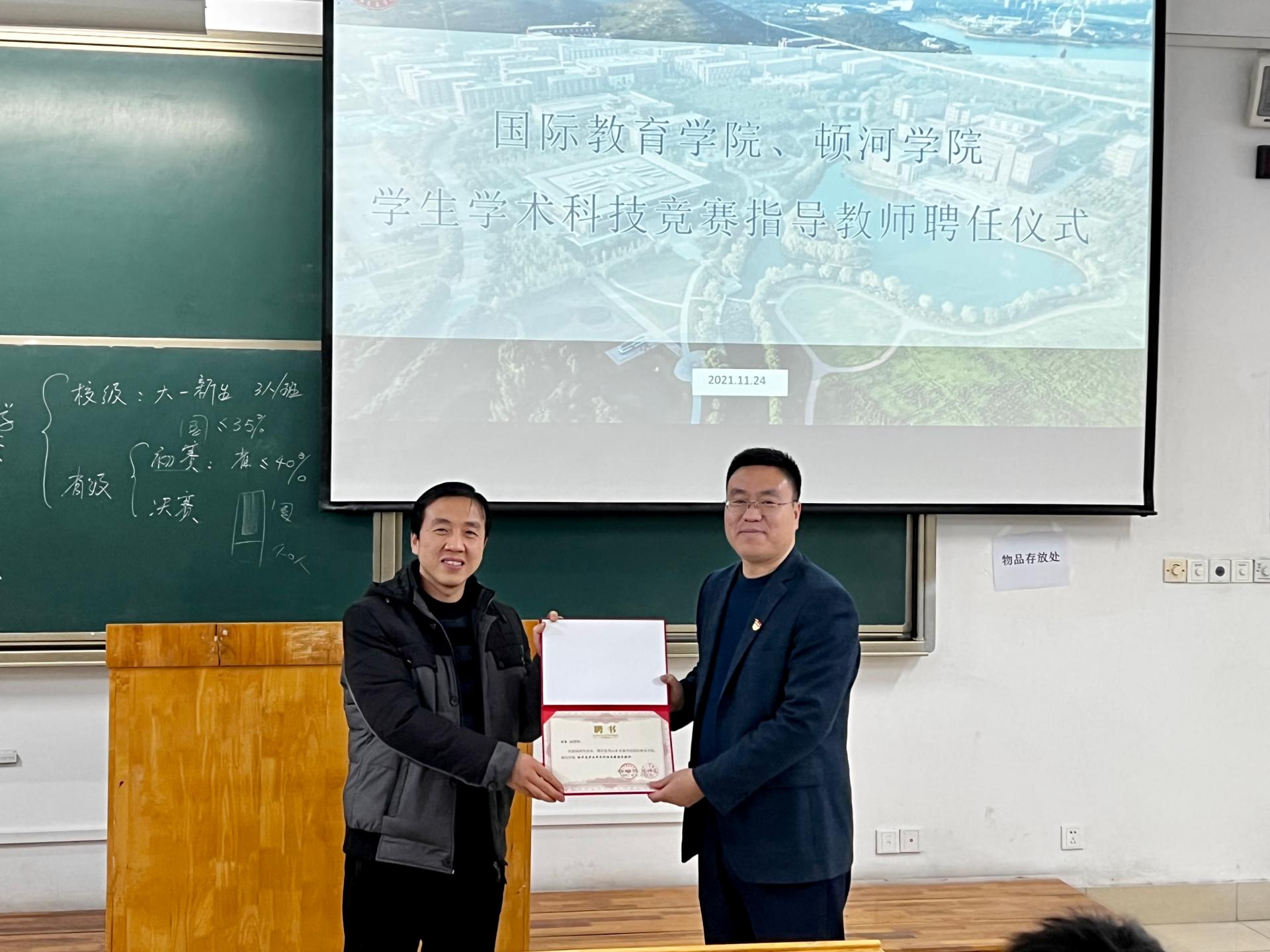 为深入推进我院大学生学术科技工作,营造浓厚的学术科技氛围,11月24日下午,我院在2B503举行国际教育学院学生学术科技指导教师聘任仪式。受聘指导教师王立飞教授、胡雷副教授、我院党委副书记周德杰、相关辅导员及学生代表出席仪式。
