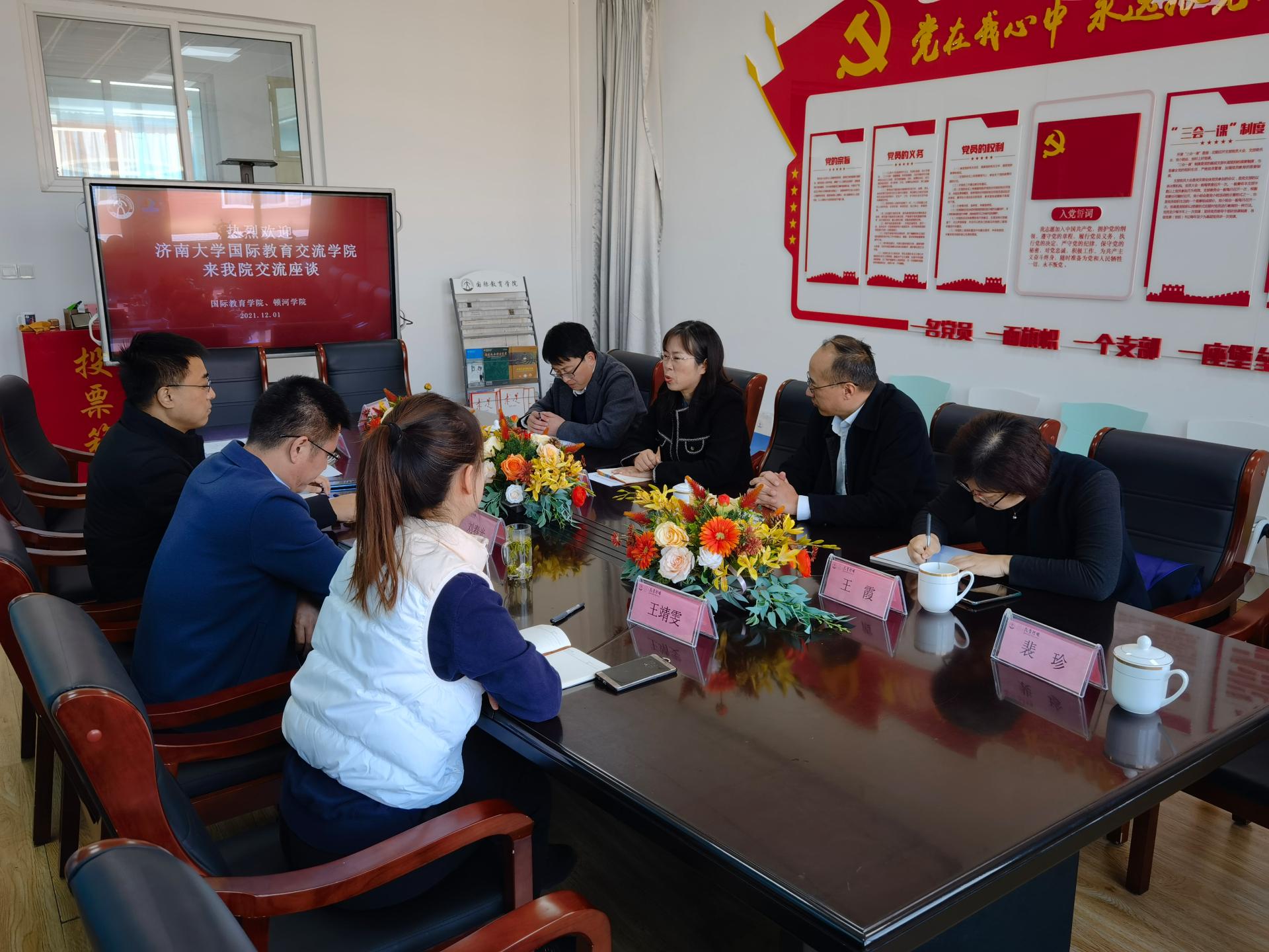 12月1日上午,济南大学国际教育交流学院党委书记、院长孙岩梅,国际合作与交流处副处长张继桥一行10人来我校交流座谈,座谈会在2B510会议室举行。国际合作交流处处长马彧,国际教育学院院长刘春光出席会议,国际教育学院相关教师参加了本次会议。