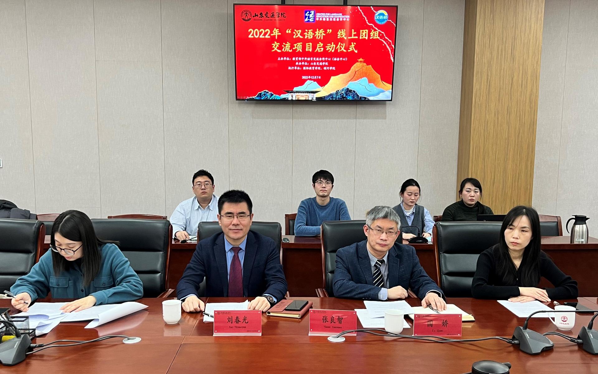 刘春光首先代表学校致辞,对教育部中外语言交流合作中心的信任和支持表示了衷心的感谢,对西南国立大学的领导、教师和同学表示了热烈欢迎,并简要介绍了学校的基本情况和学院国际化办学历程,希望本届“汉语桥”项目,为两校、两国之间架起了一座文化交流的桥梁,让各位学子在本次线上学习中可以体会到汉语的独特魅力,感受到中华文化和齐鲁文化的源远流长,真正学有所获,满载而归,为中外文化交流、语言合作和文明互学互鉴贡献力量。