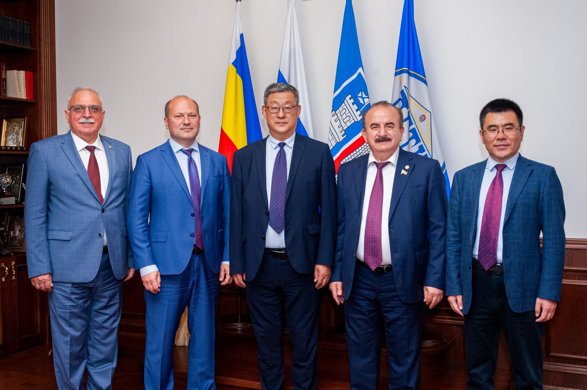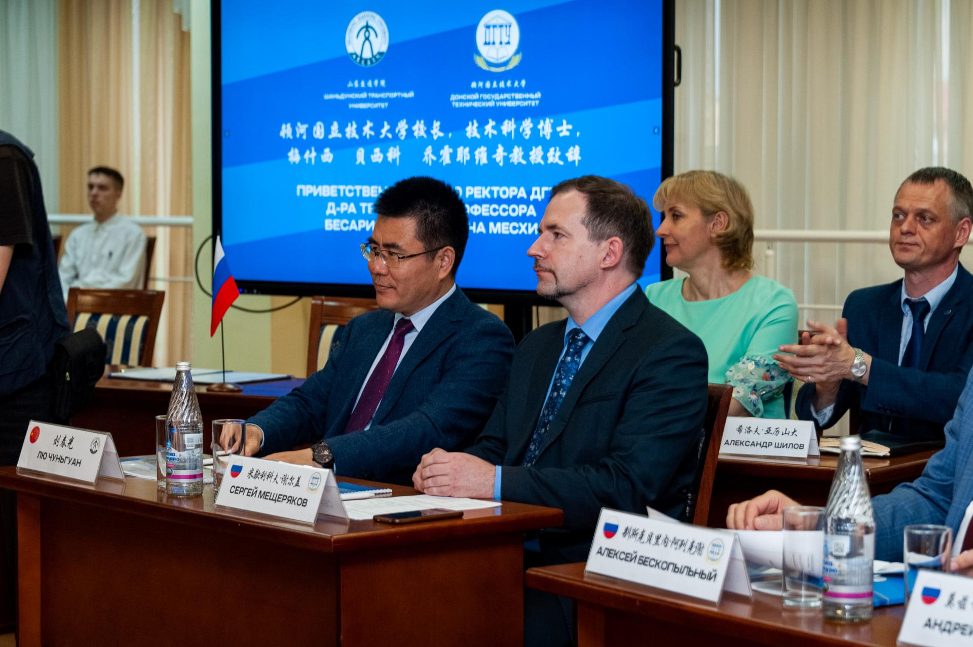 在顿河国立技术大学,罗斯托夫州副州长斯克里雅宾·亚历山大·尤里耶维奇先生、顿河国立技术大学校长梅什西·贝西克·乔霍耶维奇校长、全体副校长、学位委员会主席、系主任等50余人、中俄两校教师学生代表近40人为代表团到来举行了盛大的欢迎仪式。