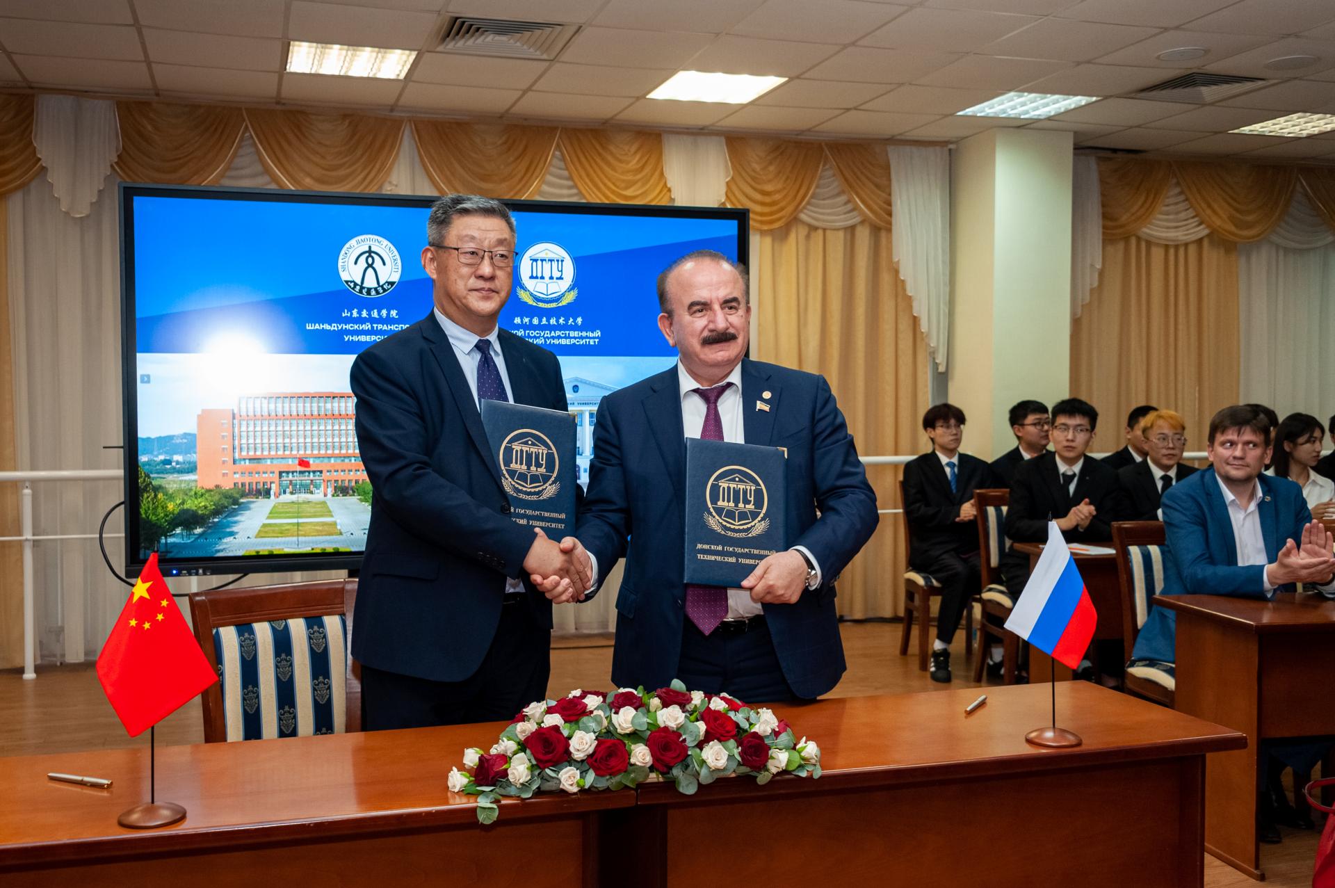 随后,两校校长签署《山东交通学院与顿河国立技术大学深化合作发展协议书》。