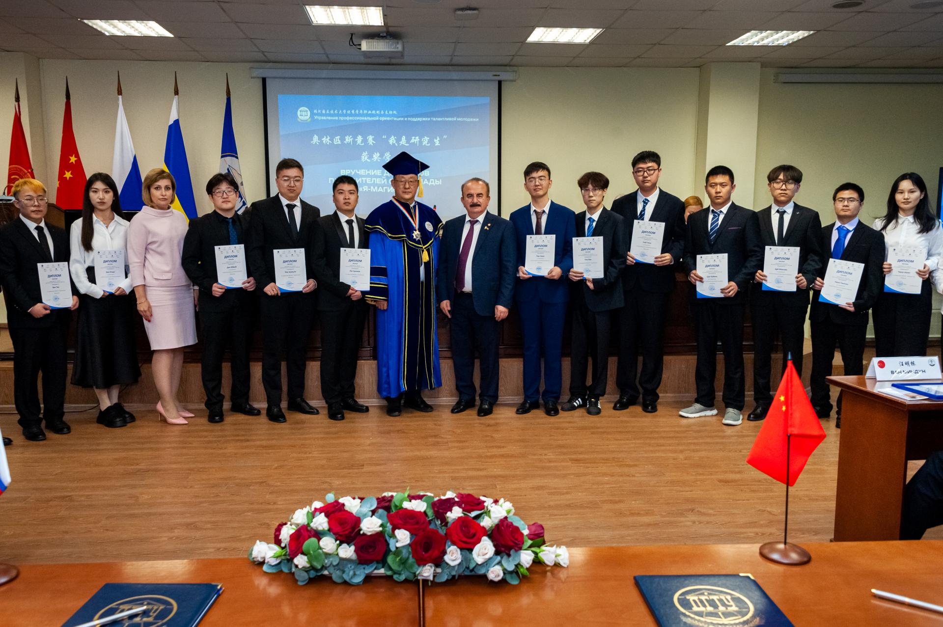 欢迎仪式中,陈松岩与梅什西向山东交通学院顿河学院参加2023年度“我是研究生”奥林匹克竞赛的获奖学生颁发获奖证书并合影留念。顿河国立技术大学宣布,本年度,通过参加奥赛等形式获得俄罗斯教科部公费读研资格的国教学子共计38名,是两校多年来全力打造‘本硕一体化’培养模式,开辟高层次国际化人才培养新通道的新突破。