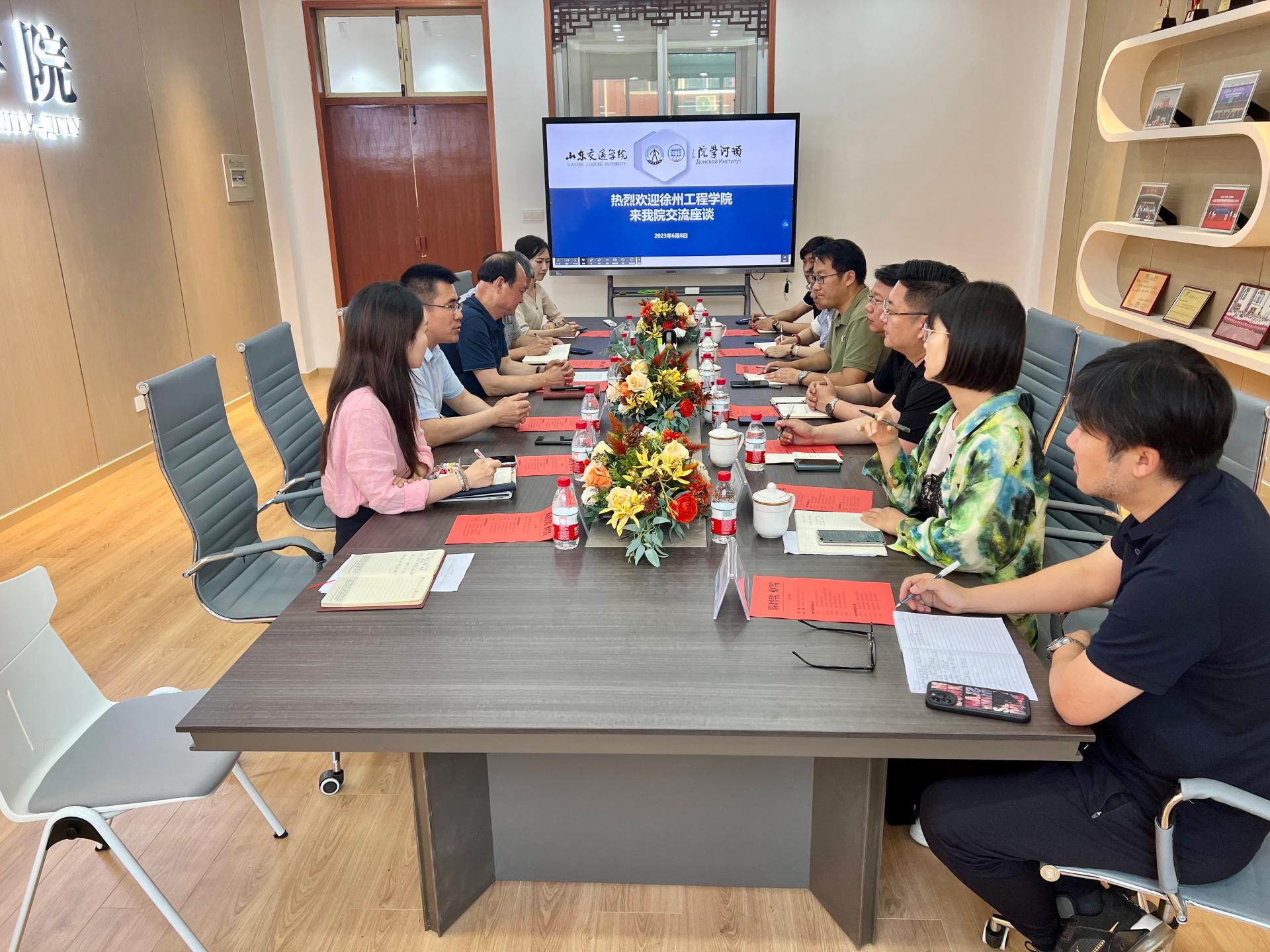 孙照波对董良峰一行的到来表示热烈欢迎,简单介绍了学院发展历史、学院党建与业务融合工作等情况。刘春光分享了我院在中外办学现状、学科建设、科研工作及教学管理等方面的经验,并表示希望加深和徐州工程学院的沟通与合作,共同探索全新的办学模式和途径,为培养具有国际视野和国际竞争力的人才开拓更广阔的天地。
