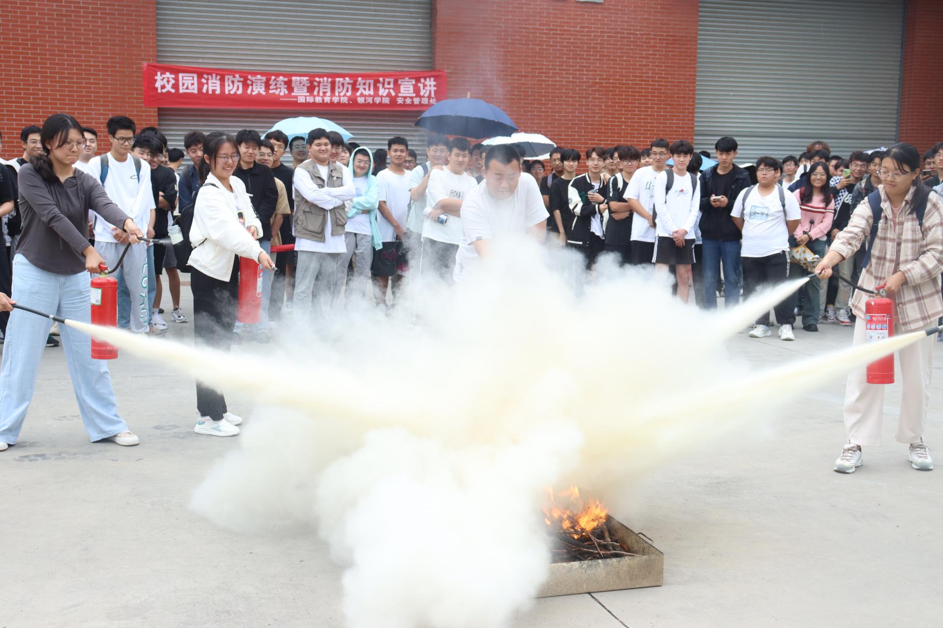 消防队队长讲解了火灾初期的扑救方法、火灾时逃生方法和注意事项,向师生们介绍了校园消防车、灭火器等常见消防器材,并演示了灭火器正确使用方法,随后同学们现场学习如何正确使用灭火器、迅速扑灭火源。演练现场组织有力,安全有序。