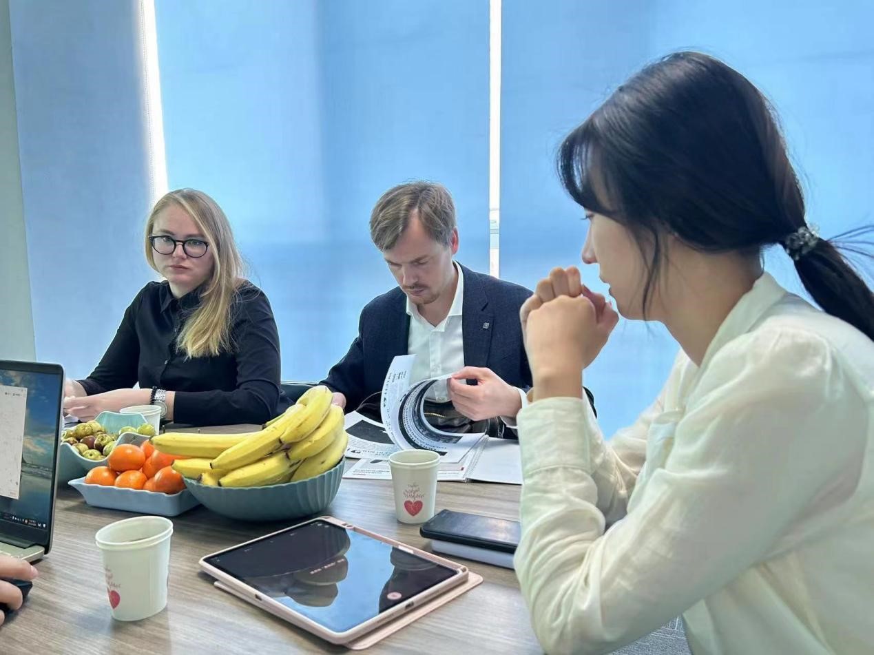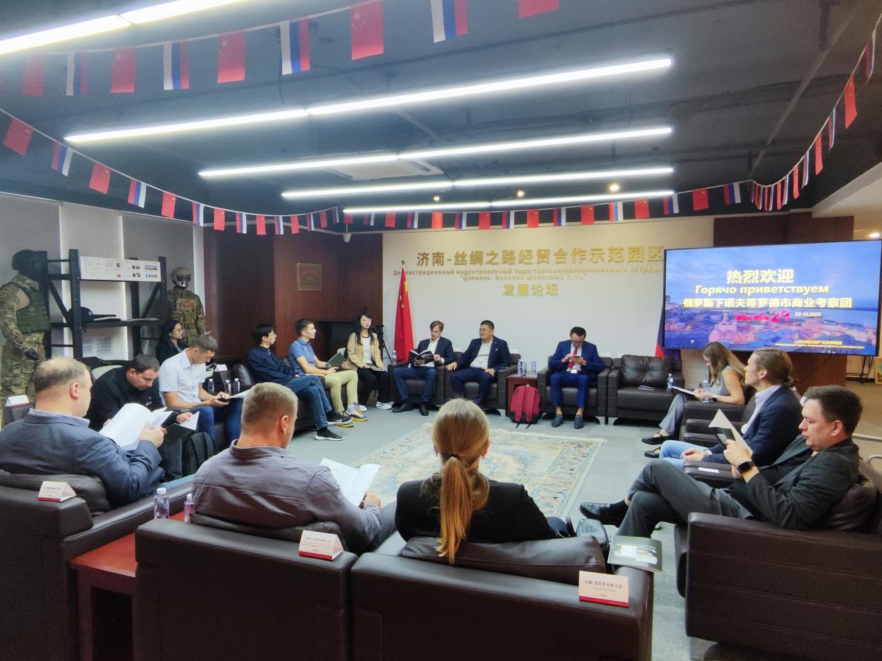朱云萍老师与5名顿河学院学生陪同俄罗斯企业团参观了山东丝路众恒产业投资集团有限公司,并在座谈会中进行实时翻译。