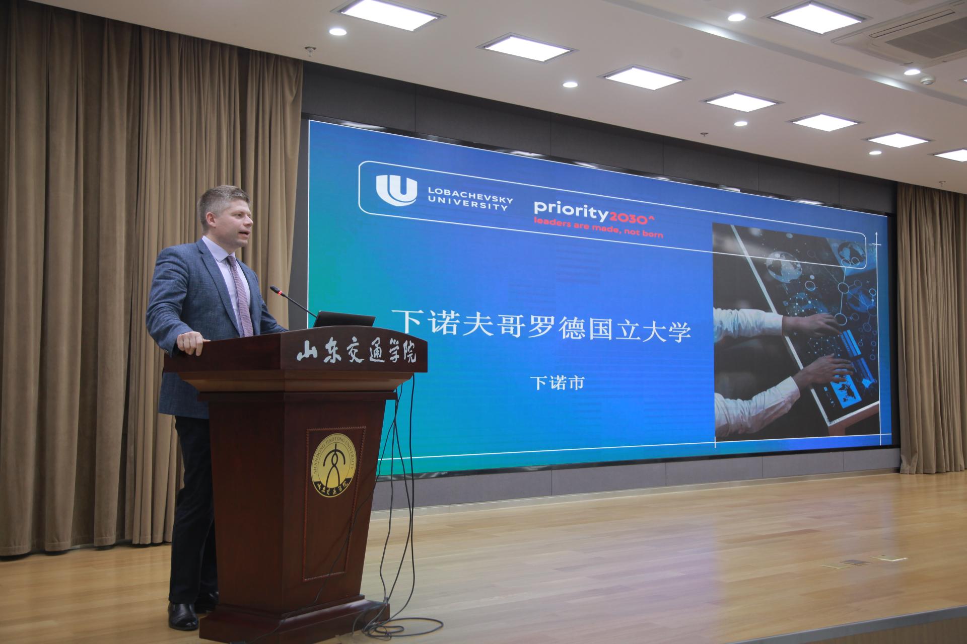 下诺夫哥罗德市副市长列昂尼德·斯特列利佐夫首先发表致辞,他介绍了下诺夫哥罗德市的社会经济发展、地理位置环境、高校资源情况、科研合作和国际交流合作等情况。