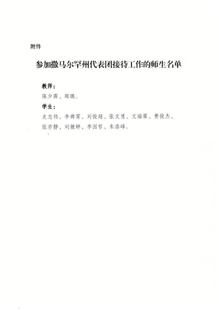 近日,国际教育学院收到山东省委外事工作委员会办公室表扬信,信中对我院郑璐、陈少霖等12名师生在乌兹别克斯坦撒马尔罕州州长图尔季莫夫·埃尔金容率政府与经贸代表团来鲁访问期间的翻译和志愿服务工作表示了充分肯定和诚挚谢意。