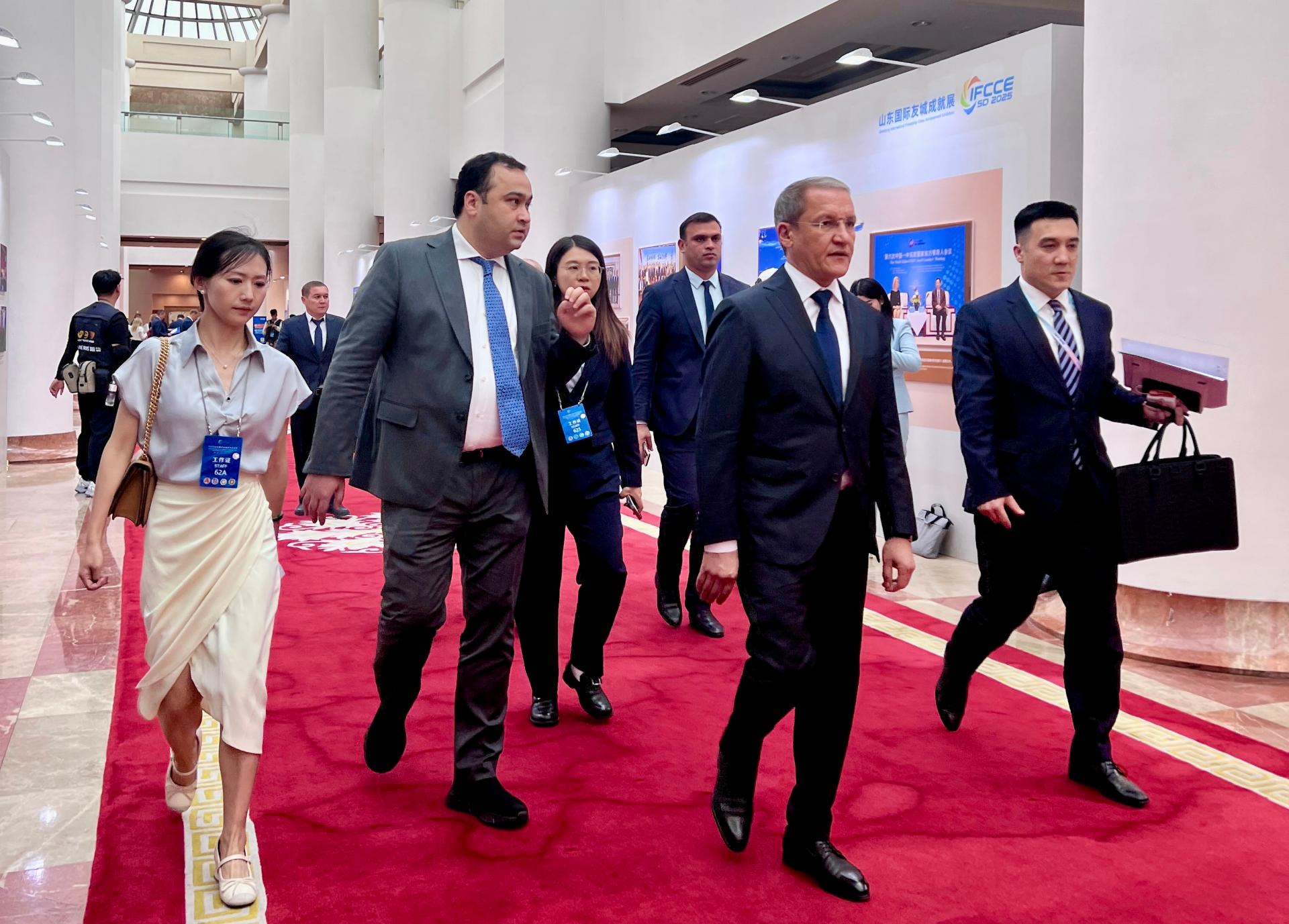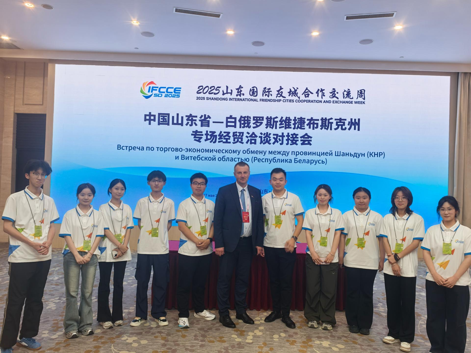 “2025山东国际友城合作交流周”系列活动是我省举办的一场规模宏大、内容丰富的国际交往活动。国际教育学院积极响应,精心组织,共选派6位俄语教师、3位英语教师和16名学生志愿者,全程参与了俄罗斯、白俄罗斯、乌兹别克斯坦、吉尔吉斯斯坦等国州长、副州长等5个俄语省部级领导代表团和尼日利亚包齐州政府、津巴布韦驻华大使两个英语代表团的翻译和志愿服务保障。凭借扎实的语言功底和出色的跨文化沟通能力,师生们出色完成了省领导会见、友好省州长对话、省州长媒体专访、专场经贸洽谈等翻译任务。